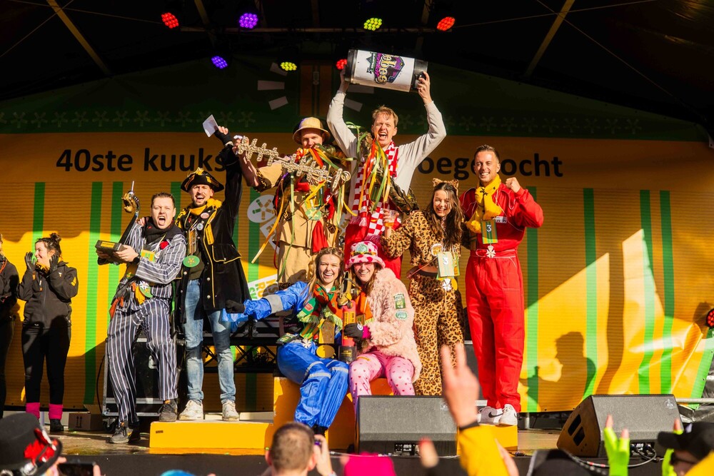 In een centrum dat om de vijf minuten stuivertje wisselde tussen zonovergoten en regenachtig werd de wedstrijd van de 40ste Kuukse elfkroegetocht verreden. De vorig jaar geïntroduceerde hindernisbaan was ook dit jaar - zij het eenrichting - de laatste horde voor de finishknop. Deze werd dit jaar wederom het snelst ingedrukt door Joris en Robert Verkerk van Bacchus Feestverhuur.