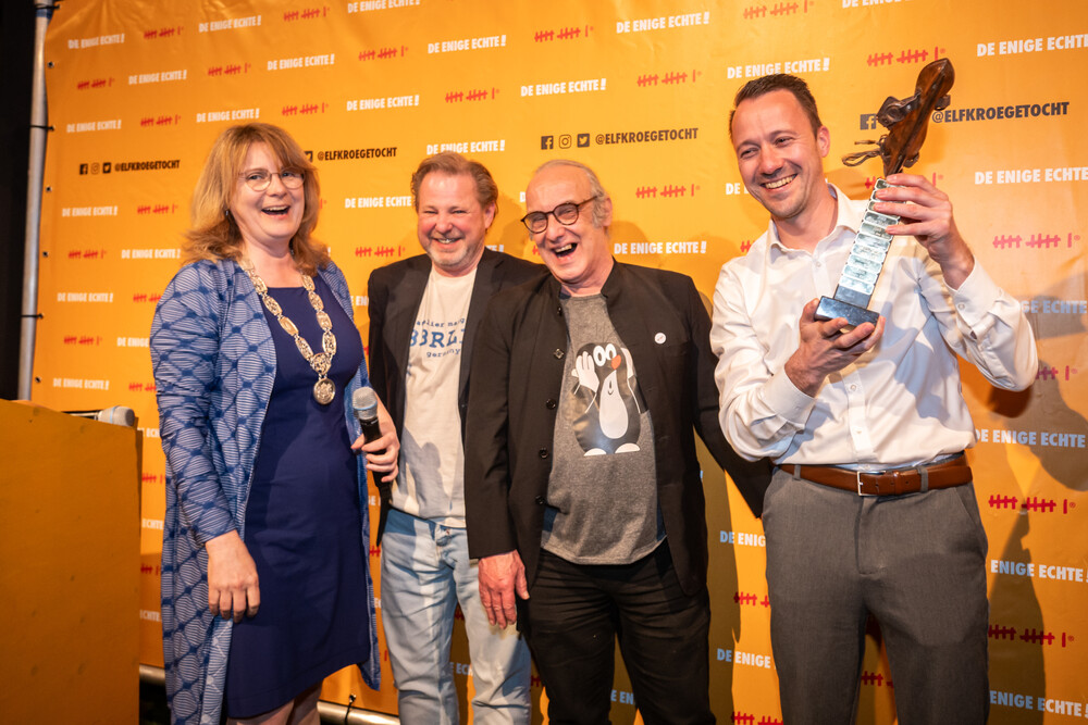 Hoofd van de Entertainmentcommissie Joris Reijnen mocht de trofee uiteindelijk ontvangen uit handen van burgemeester Marieke Moorman, die aanwezig was om de Commissie Kuukse elfkroegetocht beter te leren kennen. Tenminste, dat dáchten de meeste aanwezigen: nadat Joris zijn prijs ontving, werden medegenomineerden Titus Peters en Erik van de Ven met hun partners gevraagd even op het podium te blijven. Daar werden zij onder toeziend oog van de rest van de Commissie Kuukse elfkroegetocht en een groep stiekem binnengeloodste familie en vrienden toegesproken door de burgemeester en benoemd tot Lid in de Orde van Oranje-Nassau.