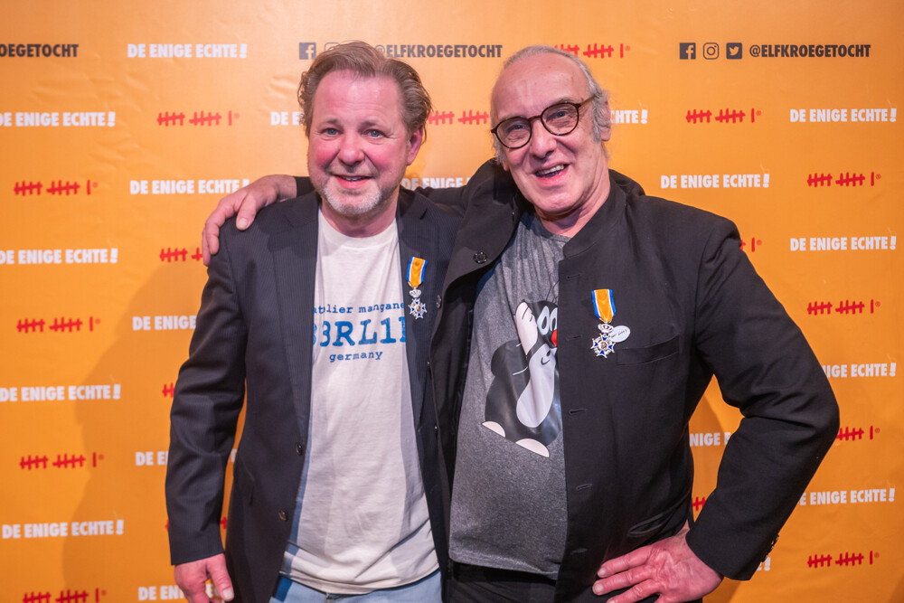 Beide heren – klein van stuk, maar groots van karakter – behoren tot het fundament van de Kuukse elfkroegetocht. Erik is één van de grondleggers van het evenement dat veertig jaar geleden het levenslicht zag en bekleedde de eerste elf jaar de rol van voorzitter. Nog altijd houdt hij zich bezig met de PR en communicatie, waarbij er geen enkele concessie op kwaliteit gedaan mag worden. Titus is al 37 jaar lid van de commissie en is het creatieve brein achter het evenement. Wat je ook nodig hebt: Titus heeft het, en anders maakt hij het wel. De kans bestaat dan wel dat het nog nat is. Naast zijn inzet voor de Kuukse elfkroegetocht zet hij zich al een kwart eeuw in voor de Martinusparochie in Cuijk en carnavalsvereniging de Nölers.