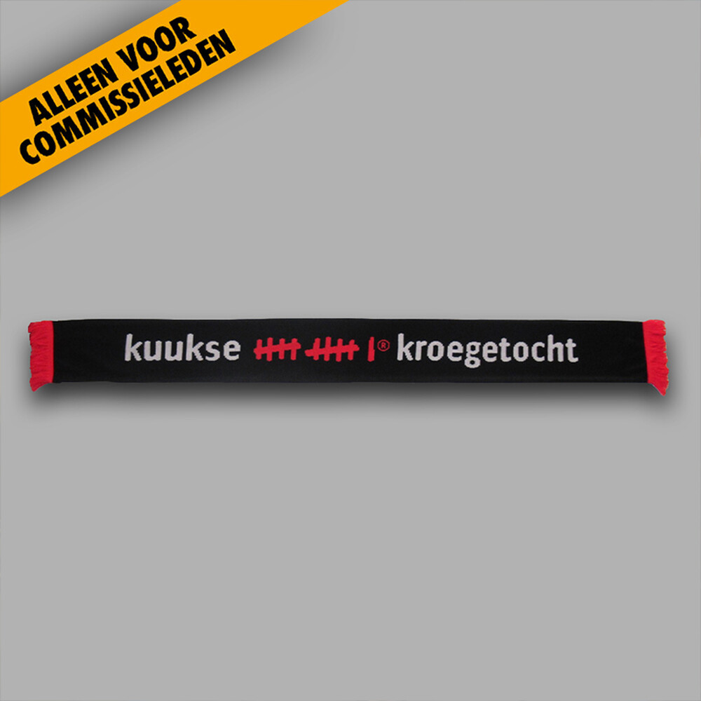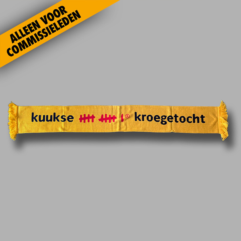 De iconische sjaal van de Kuukse efkroegetocht! Altijd handig als je vergeten bent hoeveel kroegen je langs moet op de carnavalsdinsdag. Deze vernieuwde versie is 20 cm langer dan de vorige.